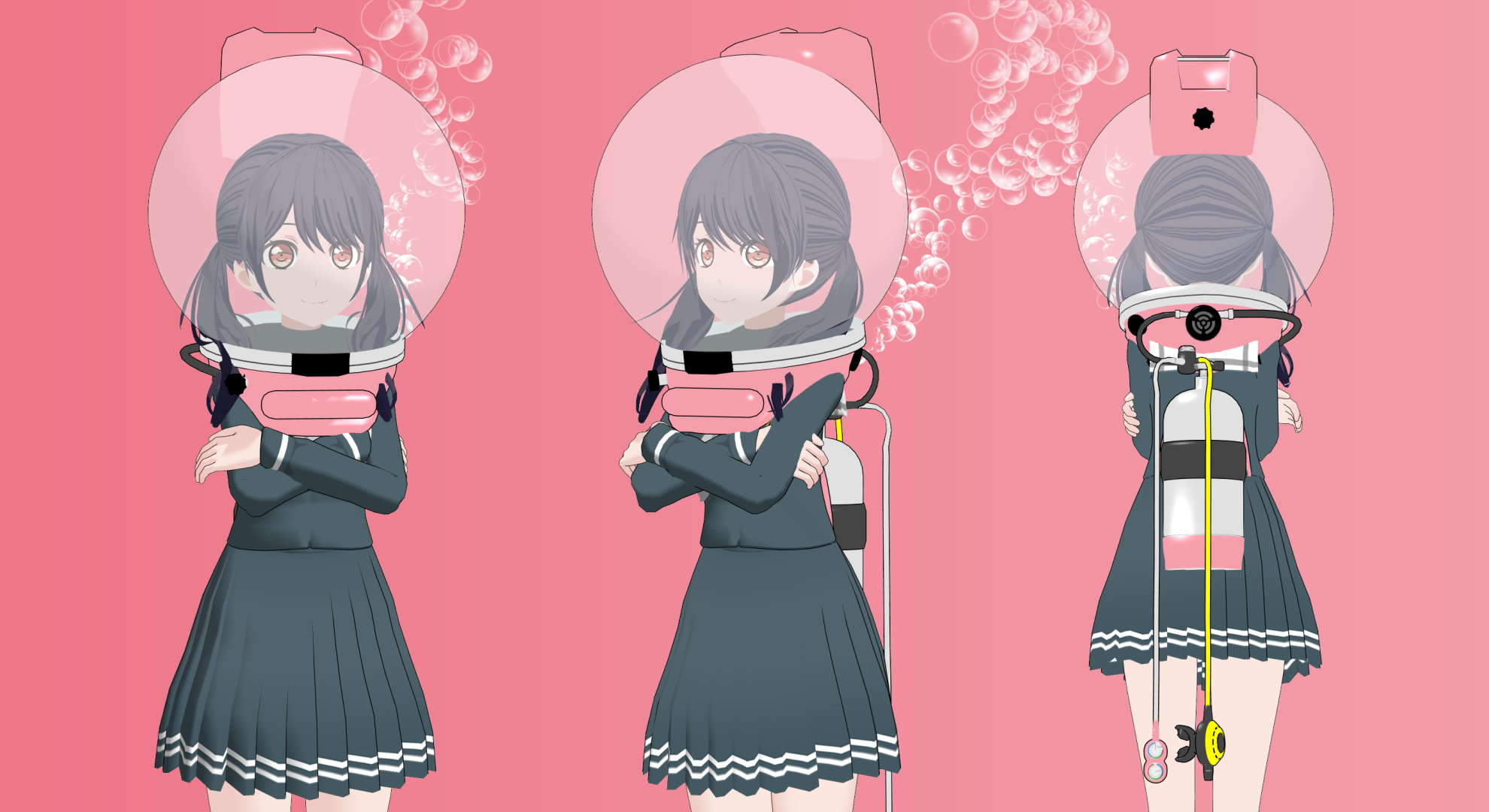 Here's the concept sheet I made on MMD, the violin. Honestly, She never know what will diving in underwater though.