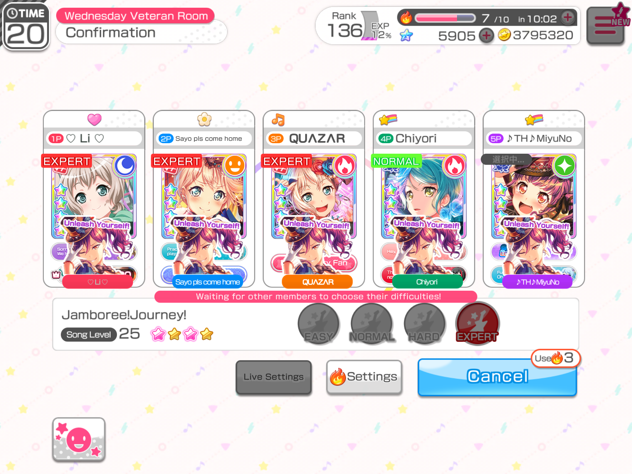 Ughhhhh ;u; I wanted at least t10k but I wasn’t able to play at all yesterday, and Saturday is the only day when I can have one hour on Bandori . . . Now I can’t play today, either . . . Oh well.