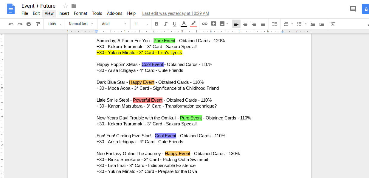 I was so bored in class one day I literally analyzed all of the future events and planned out all the characters that would give me a 30%+ bonus in said event...Annnnddd I finished organizing all of them by the end of the class on my school laptop... woop woop.