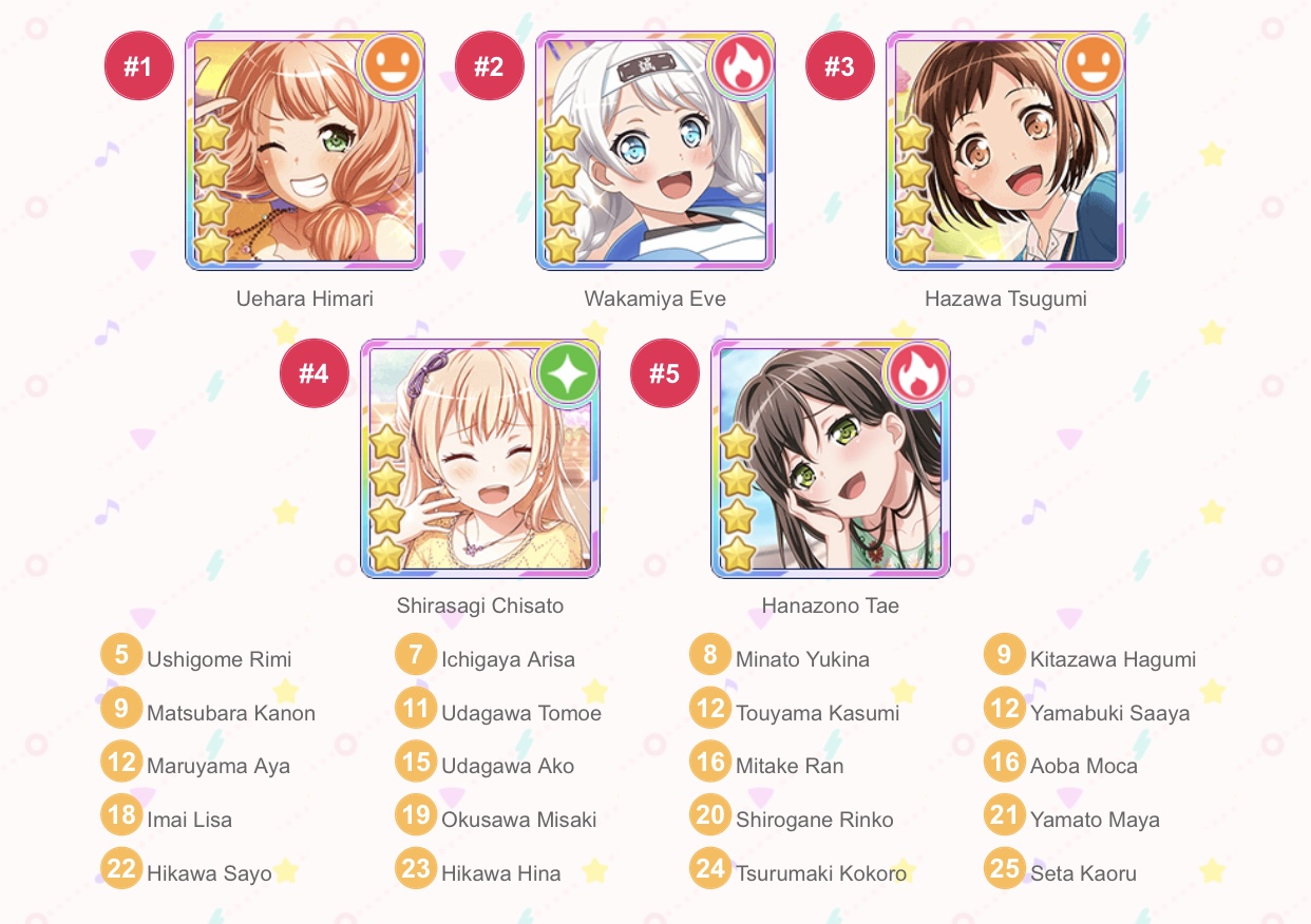 Hey, uh whattup? Hakanai, okay for real, Hello! i'm Kai! uh, i like bandori and stuff, And i thought a good way of introduing myself was to post the list of my favorite girls, (as of now i guess, you know?)
