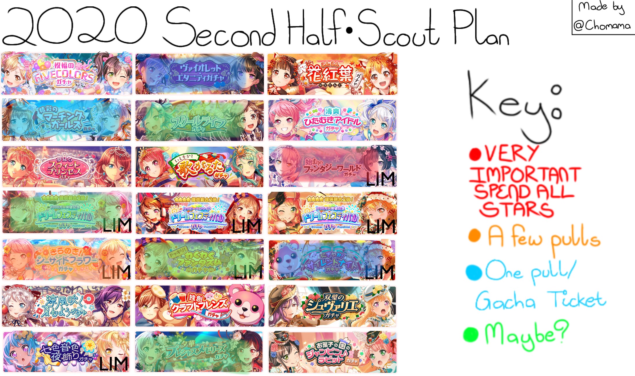 Edit: Oops, I just realized I didn't include Morfonica. There's not much to really go off of for them, so I'm just not gonna bother. I might do this again for Morfonica and RAS once they have enough cards.