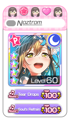 Wait so the title thingies have come out on EN? (I’m saving my half hour for 6 when the event starts.) If so, I can finally show the world that I love Arisa and Misaki and Tae even though I don’t have four stars of them~! (And the thing where you can show a transparent of a card of your choice instead of just whatever your band leader is? :D)