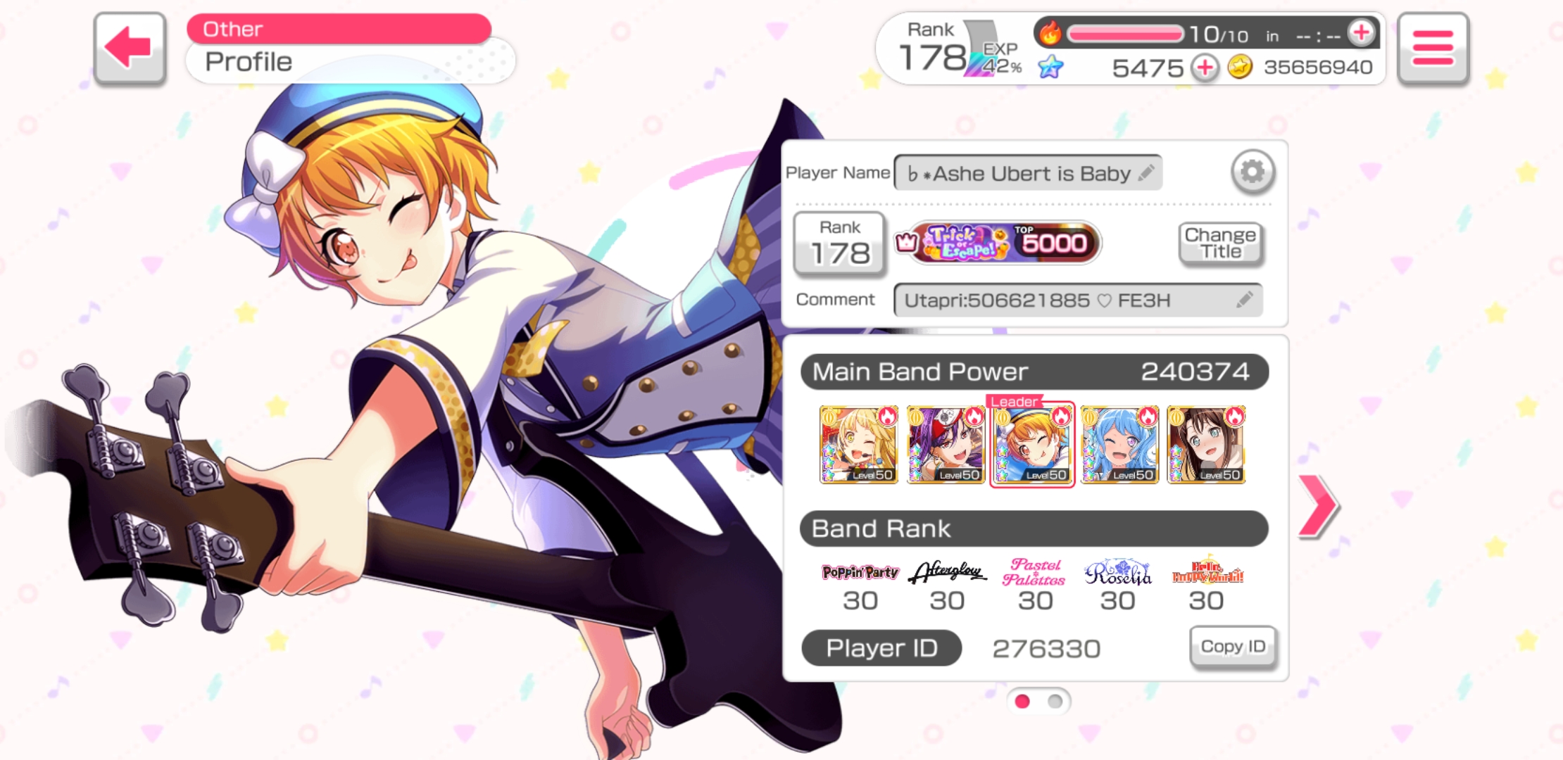 I absolutely love Himari and her personality, she isn’t like any character I ever seen before or reminds me of any character’s form other shows (though she reminds me a lot about me, tho I can see a part of each girl in me, she’s the most relatable.) Her design is really pretty, though it doesn’t stand out much by bang dreams standard, I always liked light pink hair and green eyes. And don’t get me started I’m her cards.