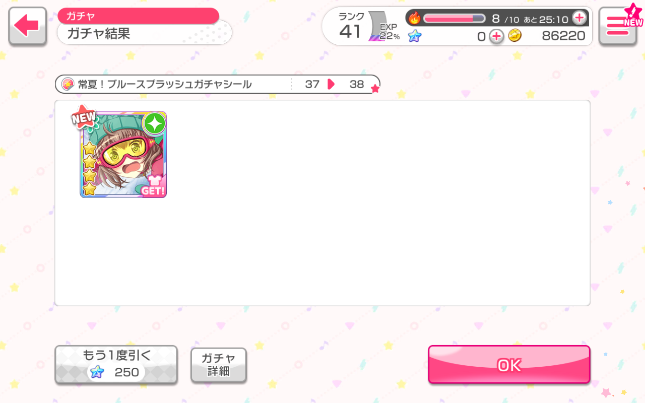[Like Eve, she appeared as gold (3☆) on the entrance of gacha, after cutting the ticket, it turned rainbow, LOL!]