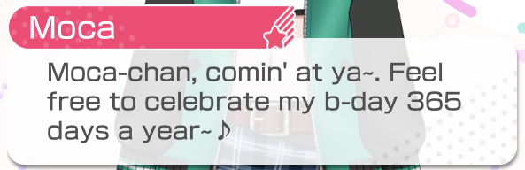 Well... There was a period when it was Kaiton's birthday and not Moca's birthday. Don't listen to Moca. "Huh~? That's mean~..."