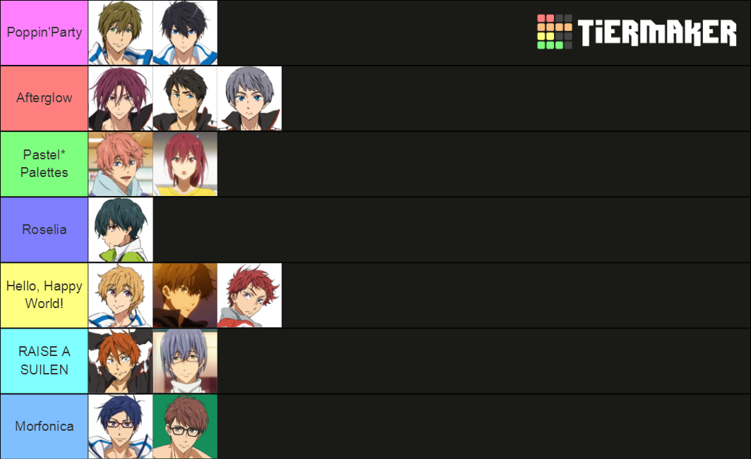this is completely out of nowhere, but. Free! main characters and which band they'd stan. why? I love BanDori and I love Free that's it