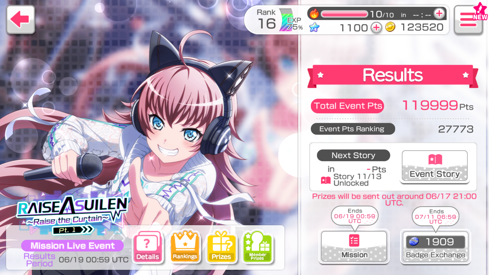 adauchi / 3☆ event tracker Level 16 / Participated events list / RAISE A SUILEN ~RAISE THE CURTAINS~ (Part 1)