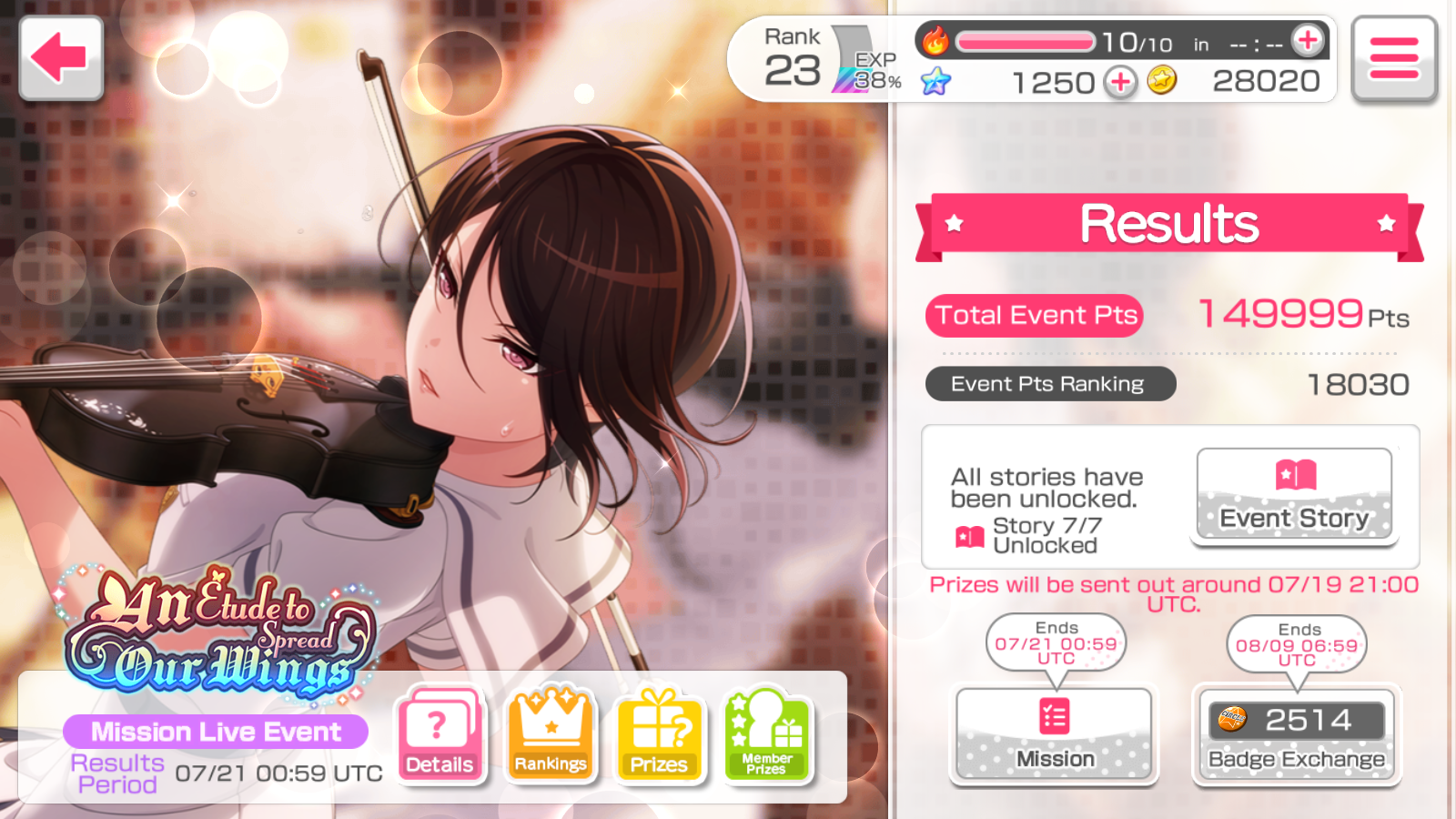adauchi / 3☆ event tracker Level 16 / Participated events list / An Etude to Spread Our Wings