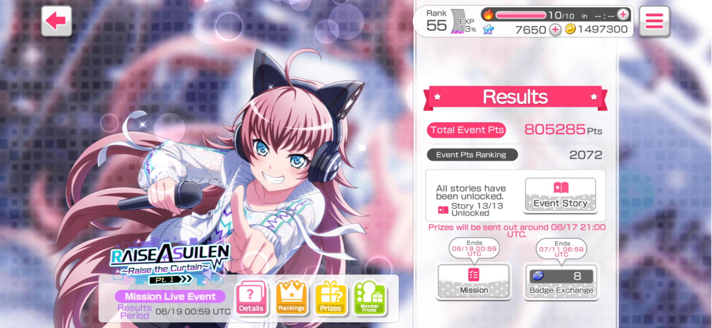 starryjeongyeon / amare Level 127 / Participated events list / RAISE A SUILEN ~RAISE THE CURTAINS~ (Part 1)
