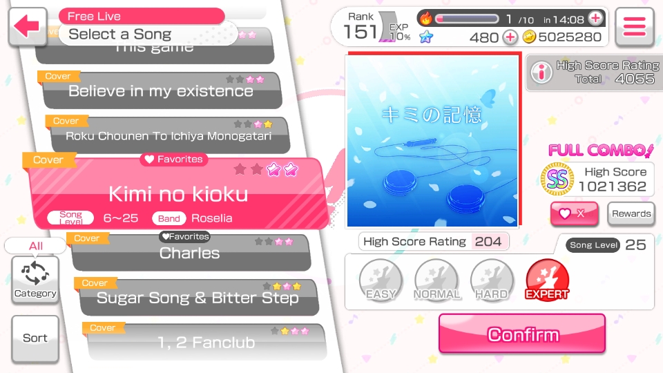 BanG Dream! / Songs list / Kimi no kioku (Memories of You) / Played songs list