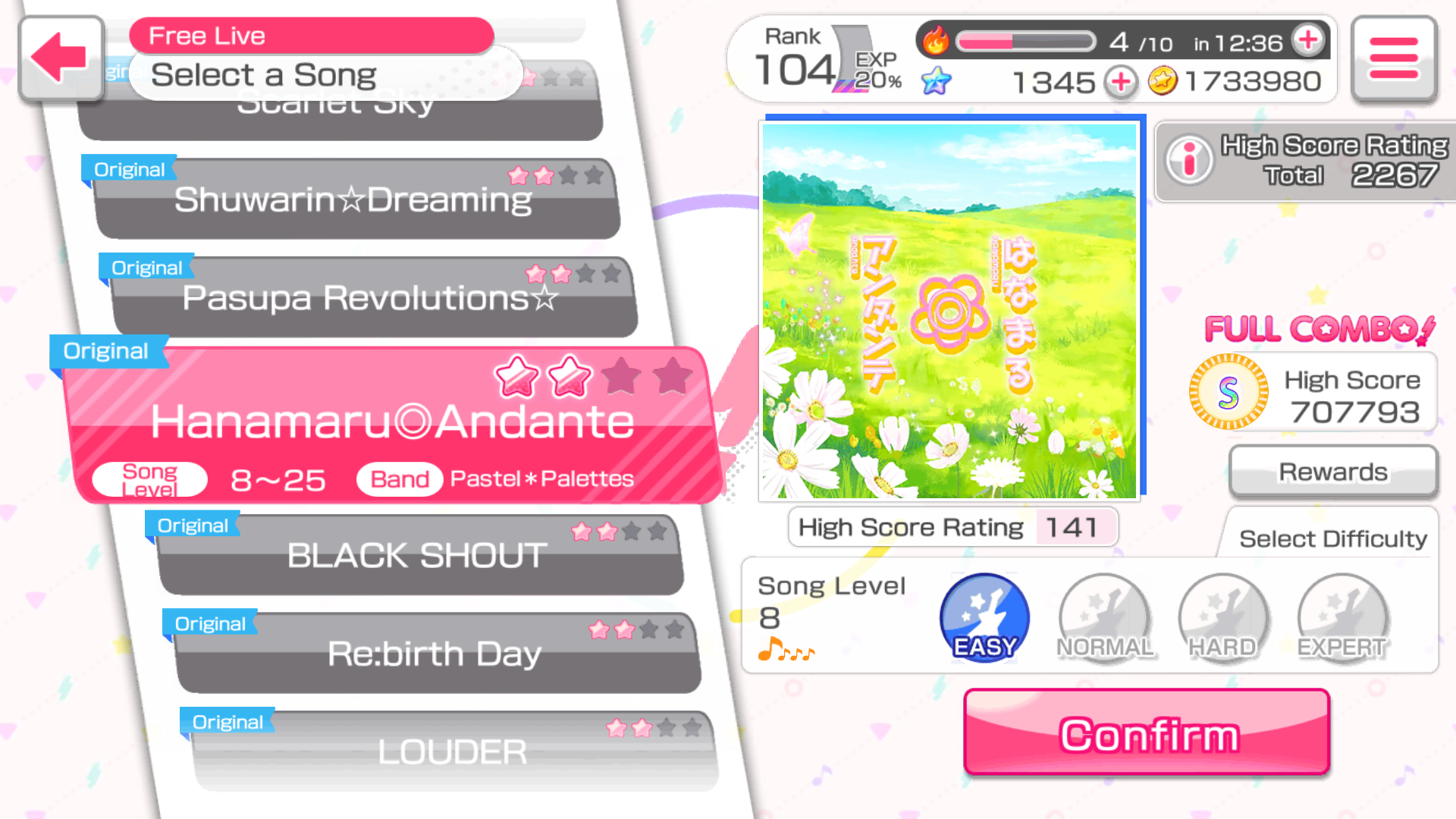 BanG Dream! / Songs list / Hanamaru◎Andante (Flower stamp ◎ Tempo) / Played songs list