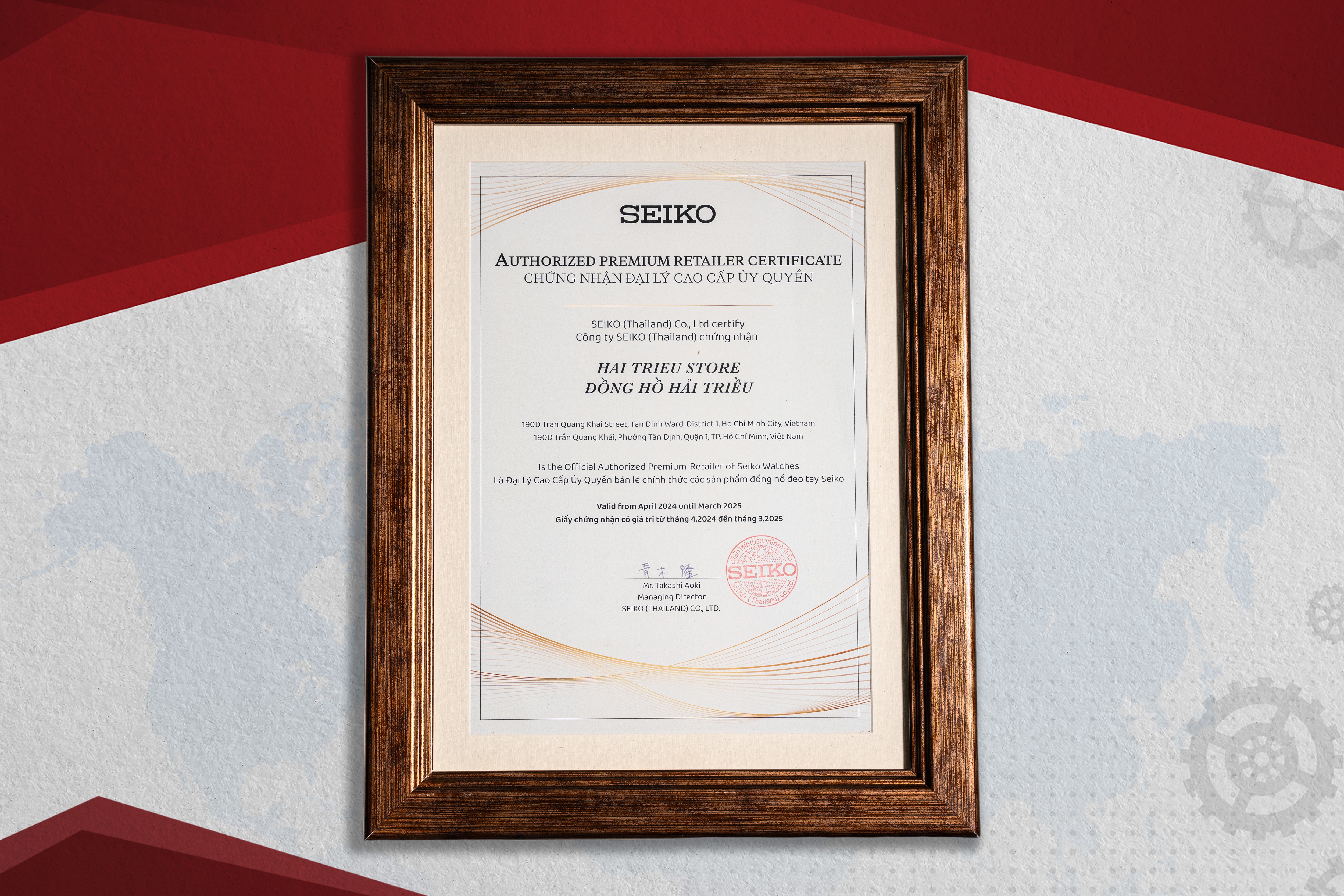 Giấy chứng nhận Hải Triều là đại lý chính hãng của Seiko